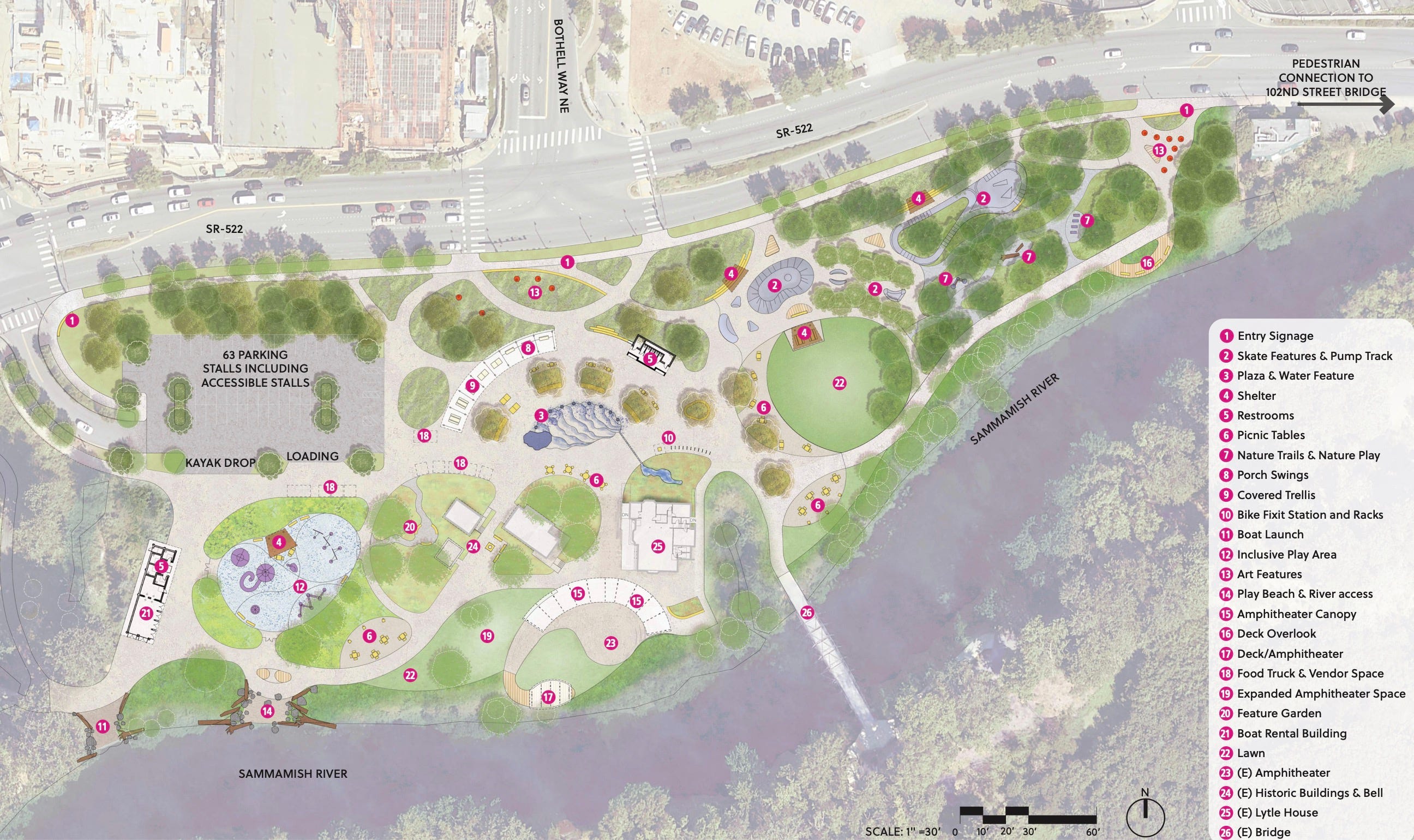 A proposed Skatepark and Pump Track at the Park at Bothell Landing would receive $1 million from the proposed King County Parks Levy renewal. Bothell is holding a workshop on Thursday, May 1, 2025, at City Hall to gather community input on the design phase of this project.