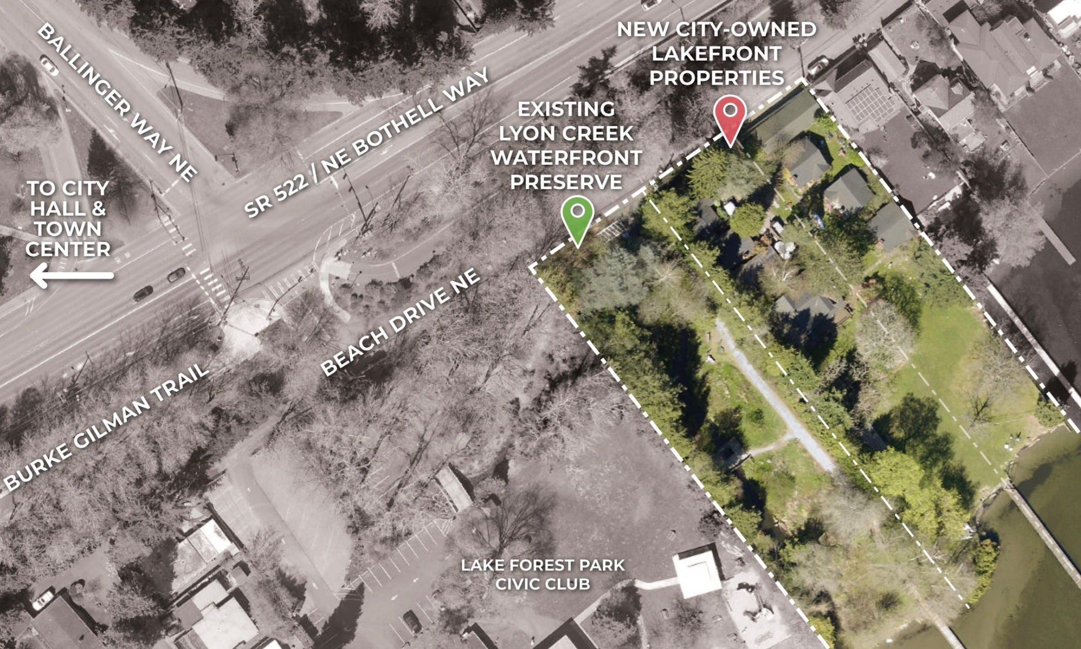 The City of Lake Forest Park would receive $4 million for the planned Lakefront Park, a future 3.3-acre park on Lake Washington near the Burke-Gilman Trail and across Bothell Way from Town Center. It will provide public water access and is estimated to cost $12 million.
