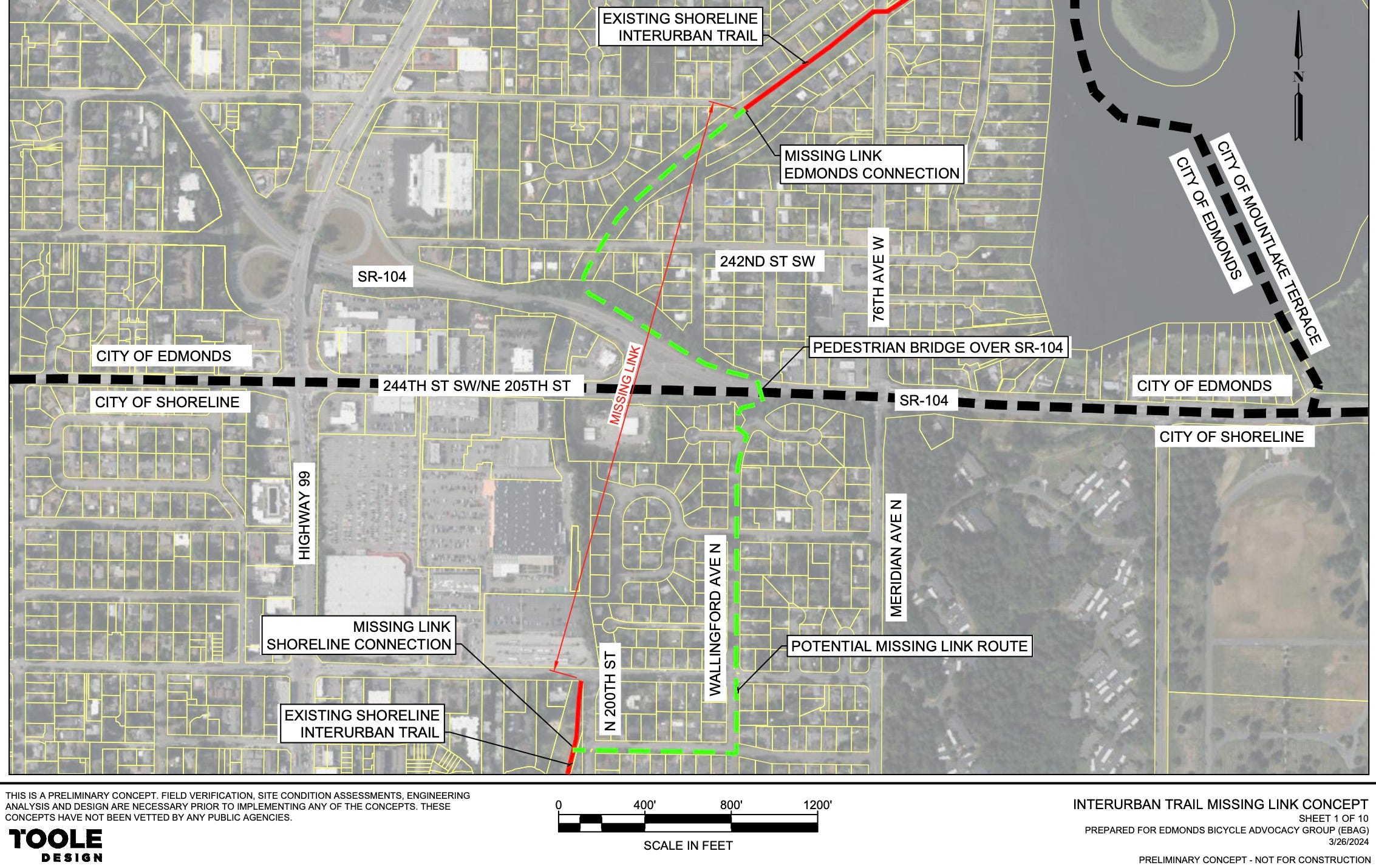 The levy would dedicate $5 million towards connecting the Interurban Trail between Shoreline and Edmonds. Currently, pedestrians and cyclists must navigate a half-mile of busy, unsafe roads and brave a death-defying crossing of State Route 104. Proposed solutions include building a bridge over the highway. Another $10 million for the connection was included in the state’s transportation budget sponsored by Senator Liias from Edmonds.
