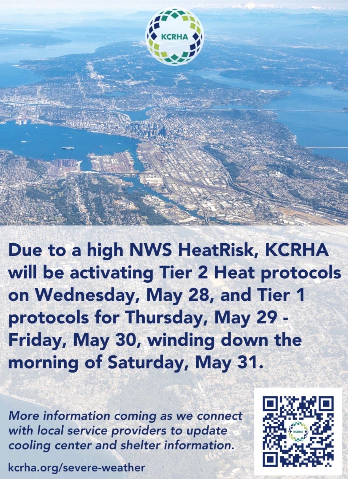 An early heatwave in the forecast prompted the King County Regional Homeless Authority (KCRHA) to open cooling centers from May 28 to May 30, winding down on the morning of May 31. Our typically mild Pacific Northwest climate can make vulnerable people more sensitive to high heat, causing a spike in serious health problems such as heart attacks, stroke, and kidney failure.