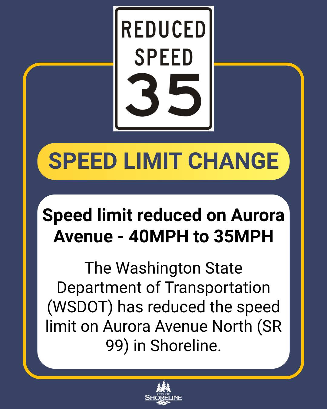 Recently, the Washington State Department of Transportation lowered the posted speed limits on Aurora Ave in Shoreline from 40 mph to 35 mph.