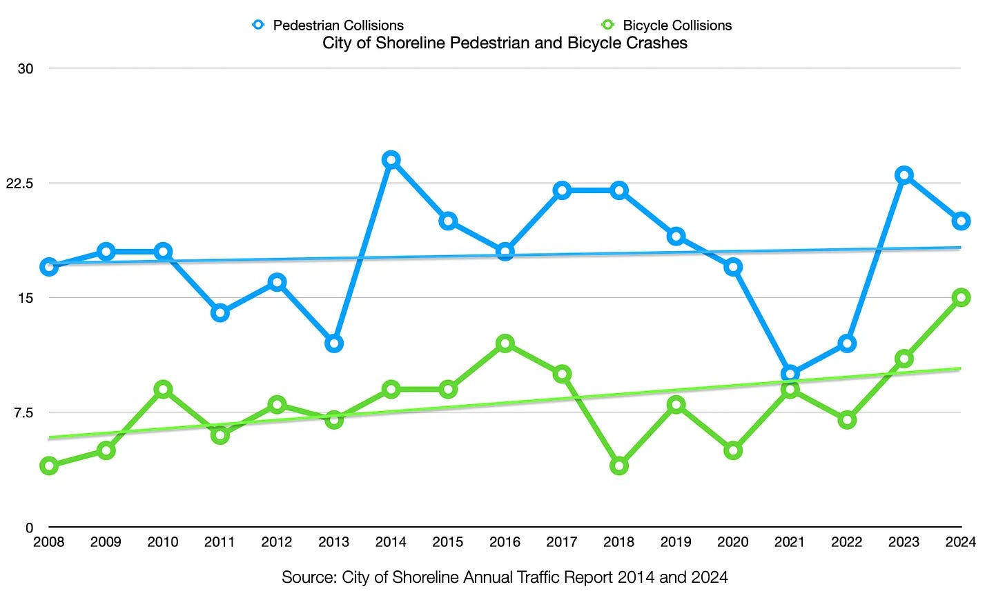 More cyclists are being hit by drivers on Shoreline roads, according to the latest Traffic Report.