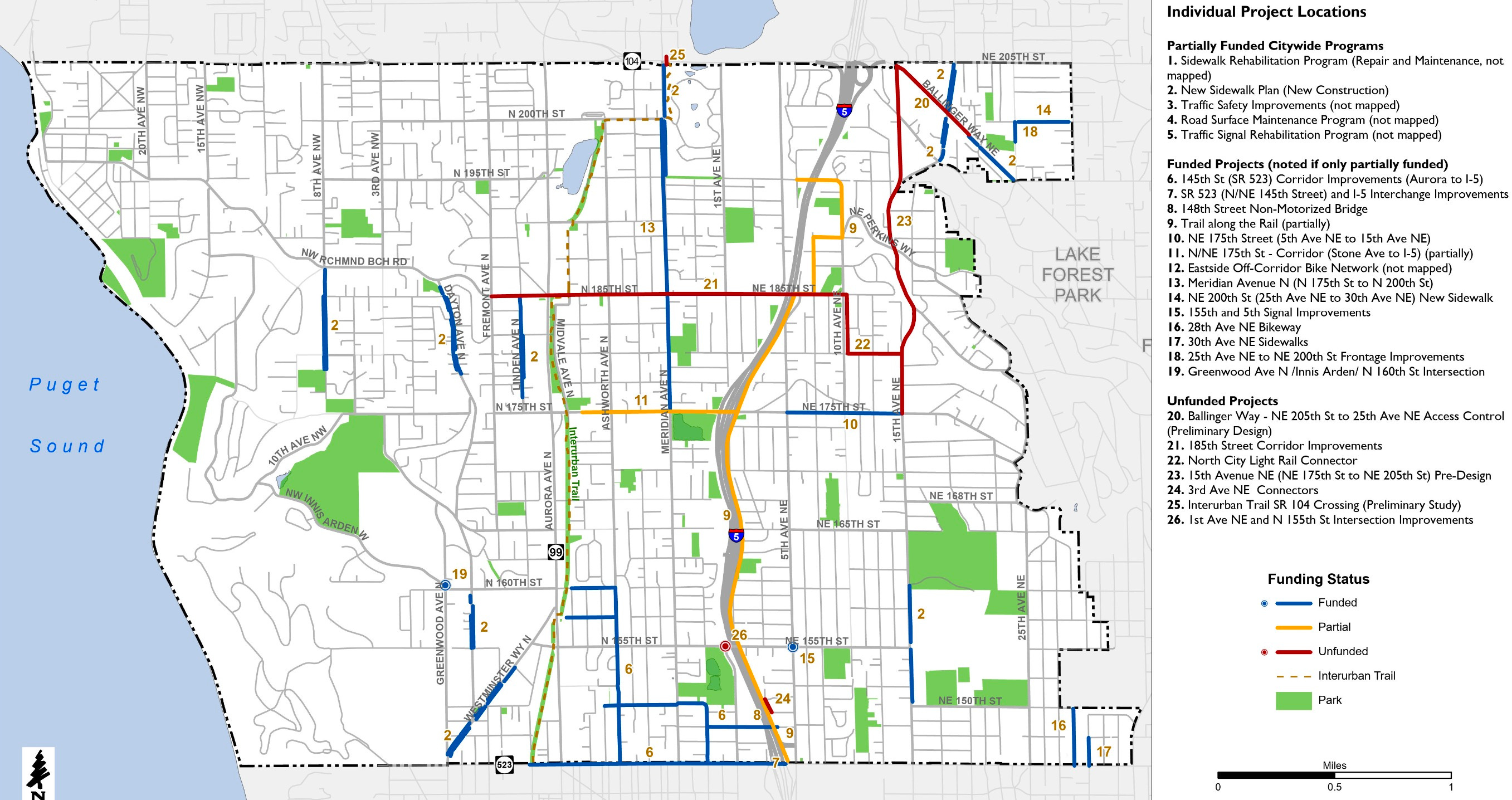 185th Street Corridor and North City Light Rail Connector - The estimated cost for the unfunded 185th project that would expand 185th west of I-5 between Midvale and 5th from three lanes to four ballooned from $80 million to $128.7 million. The cost of the North City Light Rail Connector increased from $17 million to over $24 million. The projects are so far in the future that the city has no date estimates.